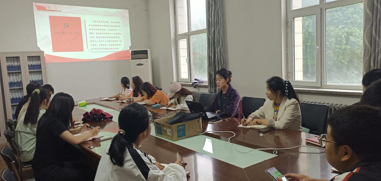 会上,仲雪妮同志主持并带领全体党员同志共同学习中国共产党章程。主要围绕总纲、党员、党的组织制度、党的中央组织、党的地方组织、党的基层组织、党的干部、党的纪律等八个方面进行了系统的学习。