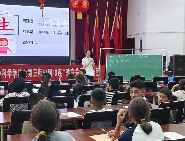 2023年7月10日,yl23455永利“教育关爱”团队成员来到了yl23455永利官网访惠聚地点---第三师51团19连,与当地连居民一起参加了每周升国旗仪式。“教育关爱”实践团三下乡活动开班仪式在连队党支部活动中心举行,yl23455永利官网带队老师王爱英教授宣布“三下乡”活动正式启动,该团队成员全部为生物科学师范专业员工。