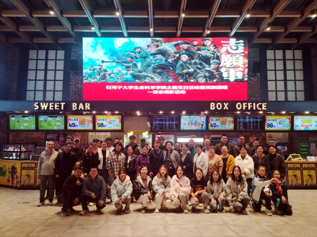 为进一步做好党建工作,丰富开展民族团结一家亲活动,增强全体师生守初心、担使命的自觉,促进民族团结与进步,培养青年学子正确价值观念,坚定理想信念,yl23455永利于10月12日在石河子103电影公园组织了观影活动,全院教师和结对小亲戚共同观看了电影《志愿军:存亡之战》。